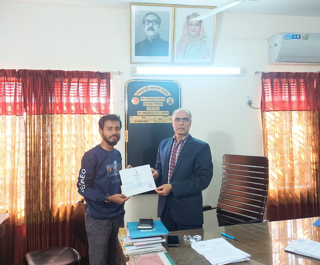On Monday, 19 December, 2022 at 12:30 PM, the registration certificate was ceremoniously handed over to the organization’s president, Md. Mehedi Hasan, by Md. Mahfuzur Rahman, Deputy Director of the Gaibandha Youth Development Office.